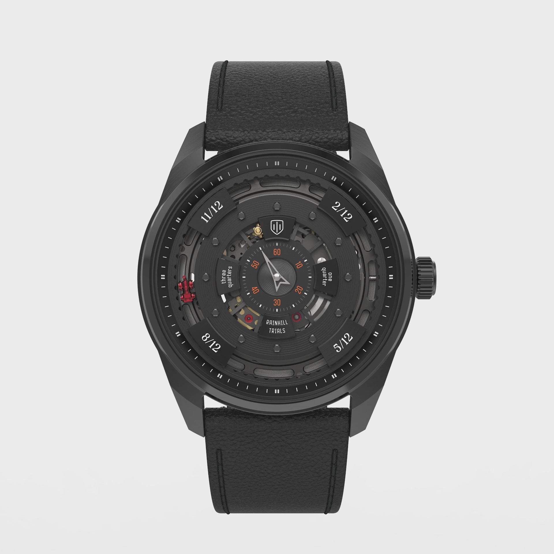 Distinctive features of the L&MR Rainhill Trials timepieces include meticulously crafted three-dimensional locomotive-shaped hands made of metal. These stylized miniature trains are powered by a Sellita SW200 customized Swiss automatic movement, visible through the intricate skeletonized dial.